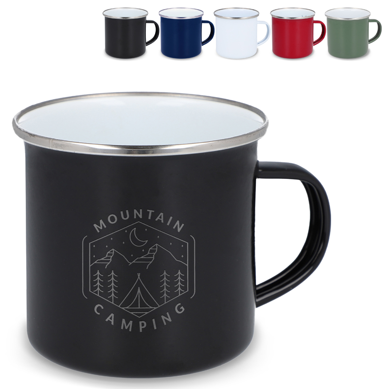 Deze tijdloze emaille mok straalt avontuur uit, perfect om te genieten van een warm drankje of een bevredigende maaltijd aan het einde van een dag vol wandelen en ontdekken.