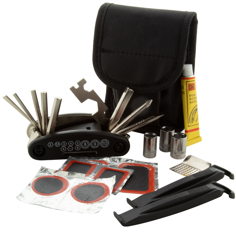 Fietsreparatieset in praktische draagtas.