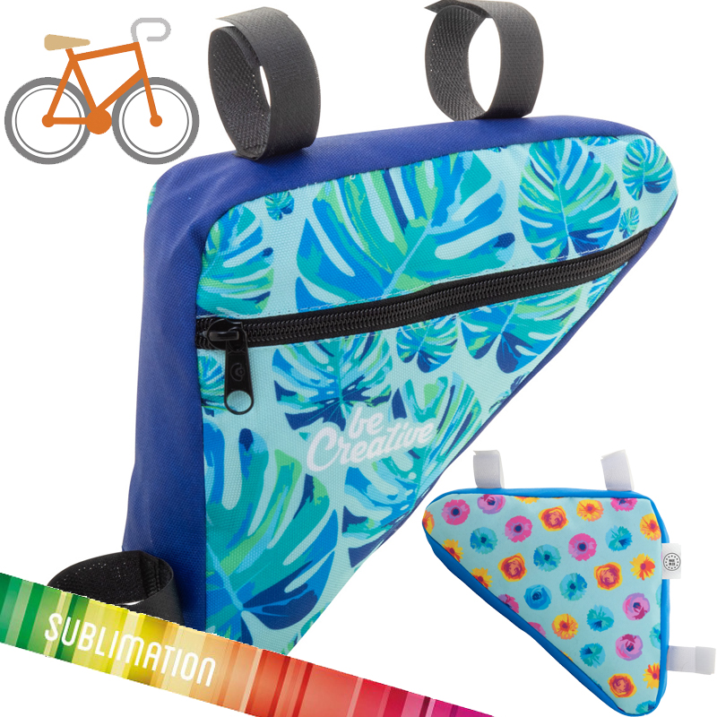 Custom made fietstas met rits van 600D RPET polyester met verstelbare klittenbandsluitingen.