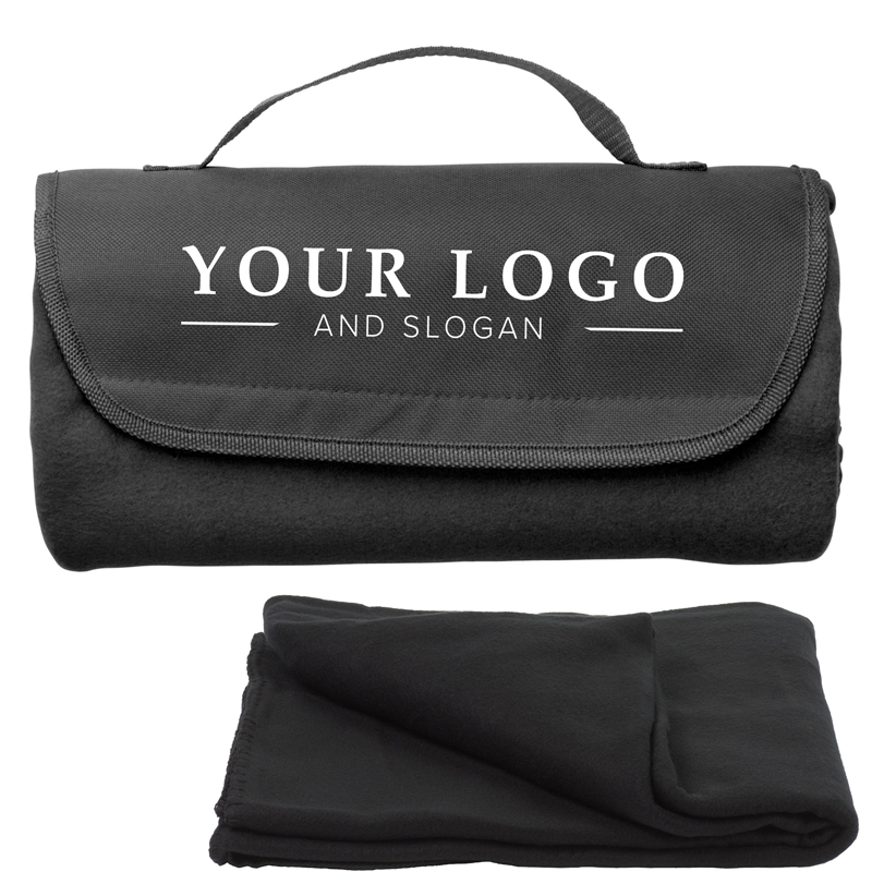 100% Polyester polar fleece deken (165gr/m2), met nylon draagband, gevouwen als envelop.