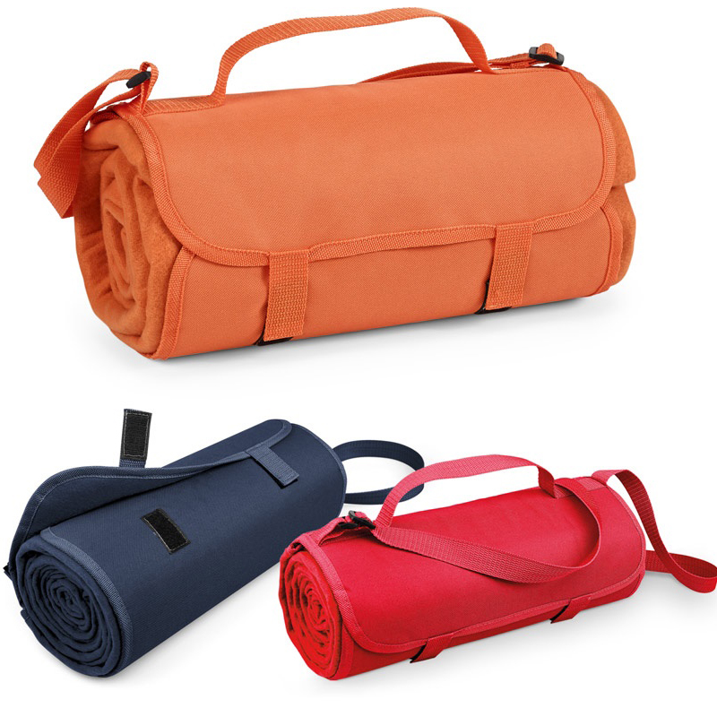 Polar fleece deken (160 g/m²) gevoerd in epe met handvat en schouderriem.