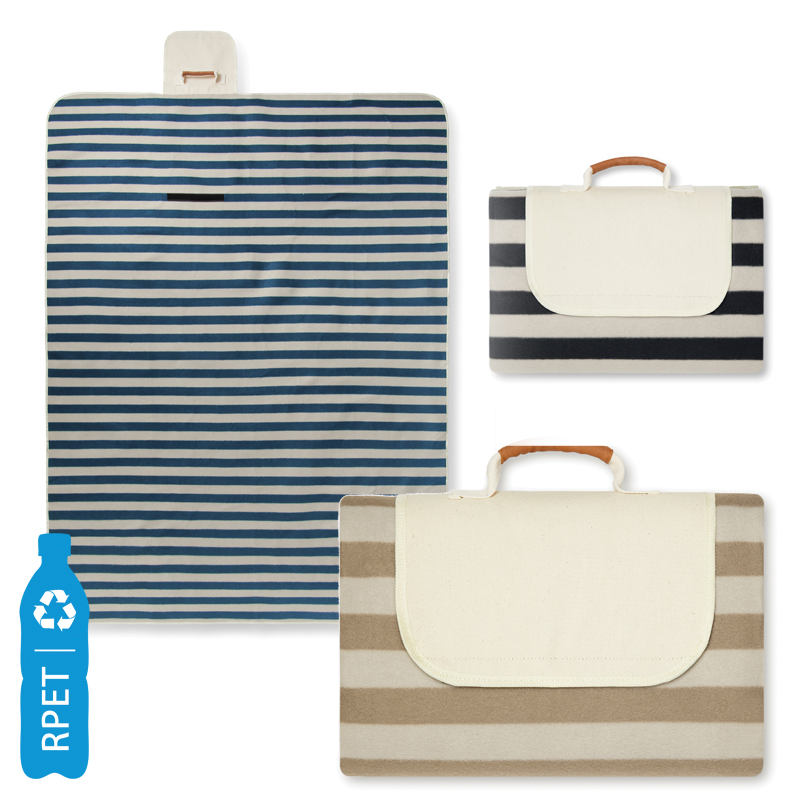 Picknickdeken van zacht fleece met katoenen canvas en details van imitatieleer.