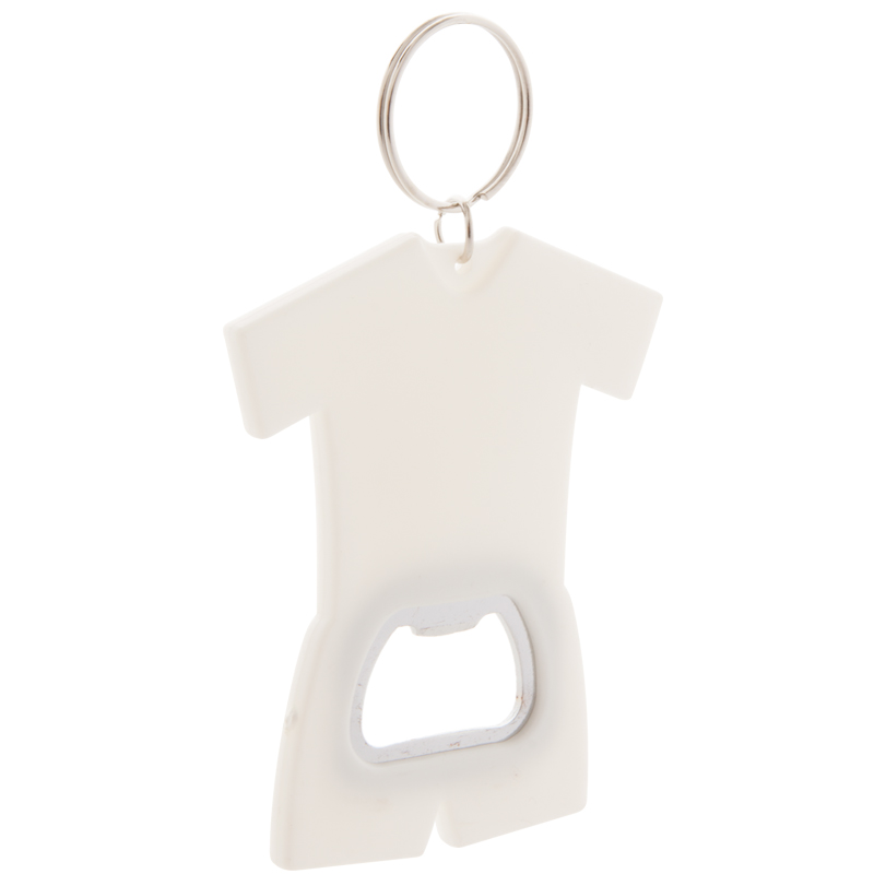Sportshirt in de vorm van een gerecyclede ABS plastic flesopener met metalen sleutelhanger.