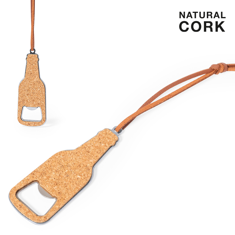 Flesopener gemaakt van kurk, in de vorm van een fles.