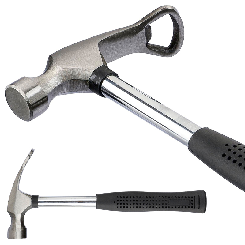 Stalen 'vrijdagmiddaghamer' met flesopener en PVC grip.