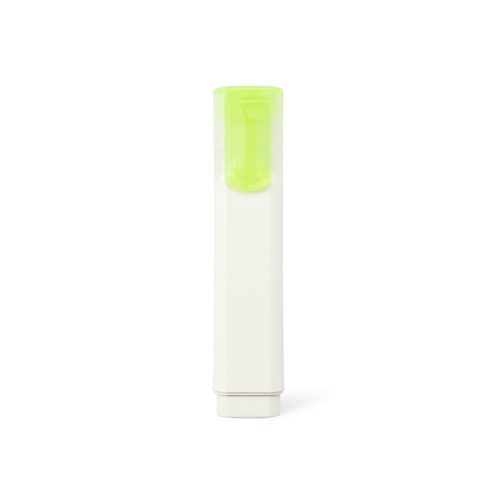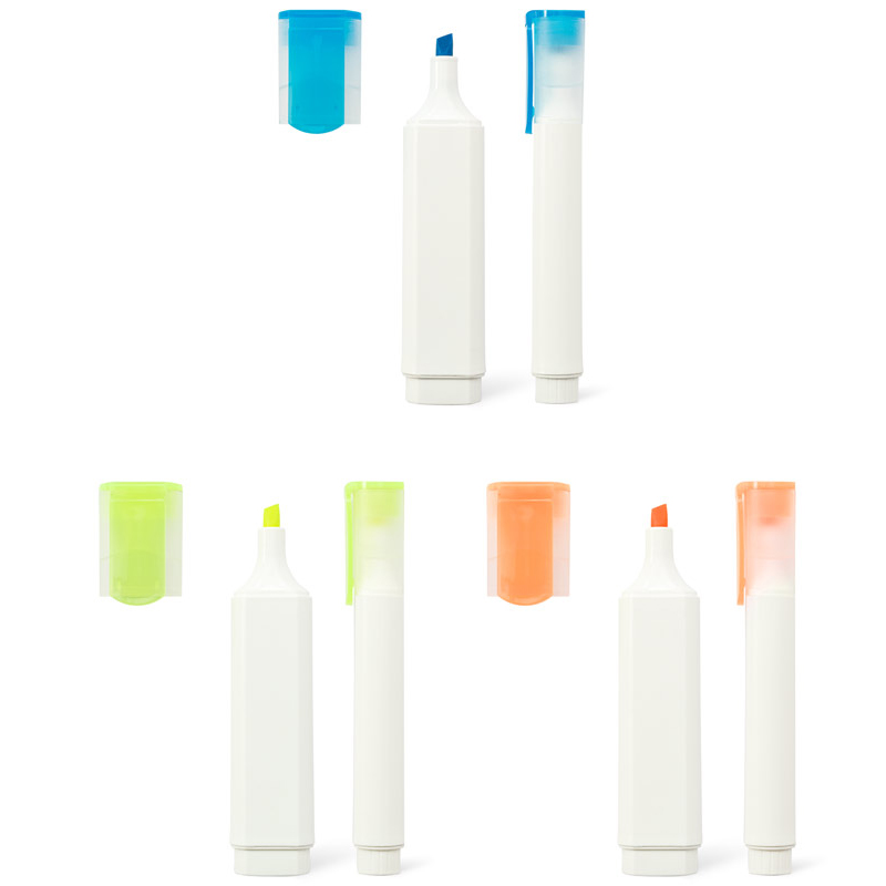 Hij heeft een clip, een witte body en een doorschijnende dop die past bij de tekst van de markeerstift.