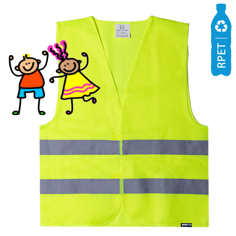 Reflecterend kinder vest van hoge zichtbaarheid, goedgekeurd volgens CE-veiligheidsnormen, gemaakt van RPET.