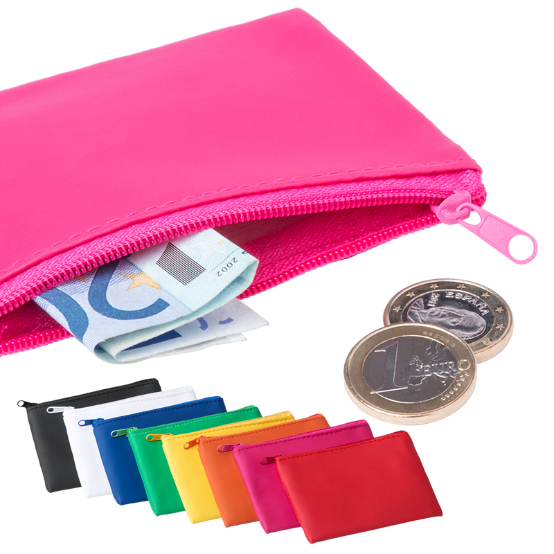 Microfiber portemonnee met rits en sleutelhanger.