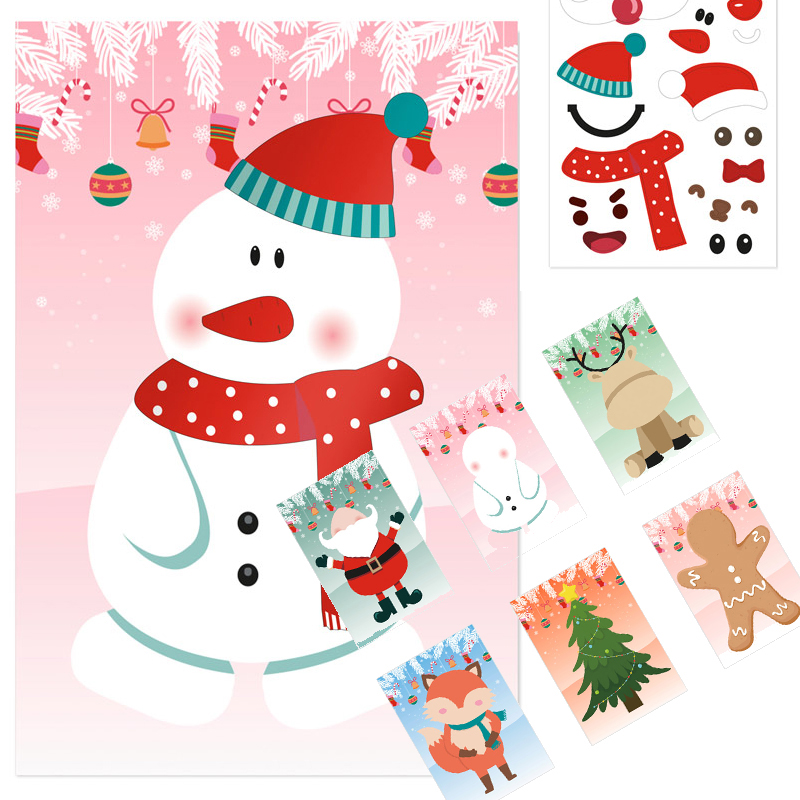 Set van zes vellen met kerstfiguren: kerstman, rendier, sneeuwpop, peperkoekman, vos, kerstboom en 3 blaadjes stickers.
