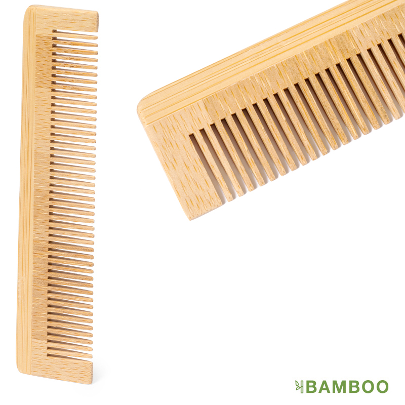 Kam gemaakt van gepolijst bamboe met gelijke borstelharen.
