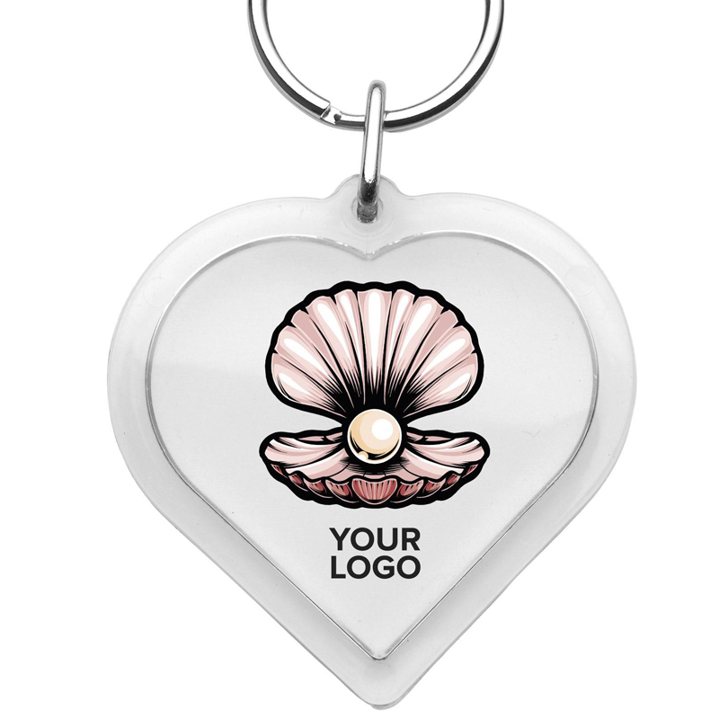 Kunstof sleutelhanger aan metalen sleutelring in hart vorm.