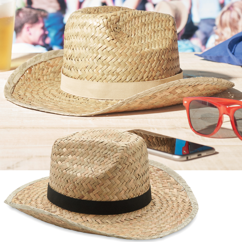 Natuurlijke strohoed in cowboy vorm met polyester band.