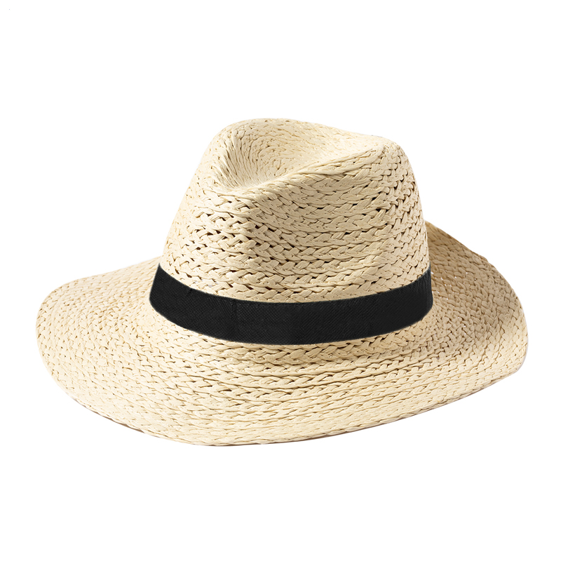 Unisex strohoed van synthetische vezels met verstelbare binnenband.