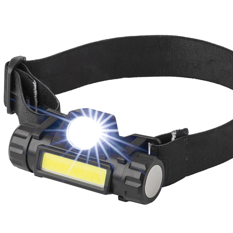 Hoofdlamp kan gekanteld worden om het licht te richten en is makkelijk los te maken van de hoofdband.