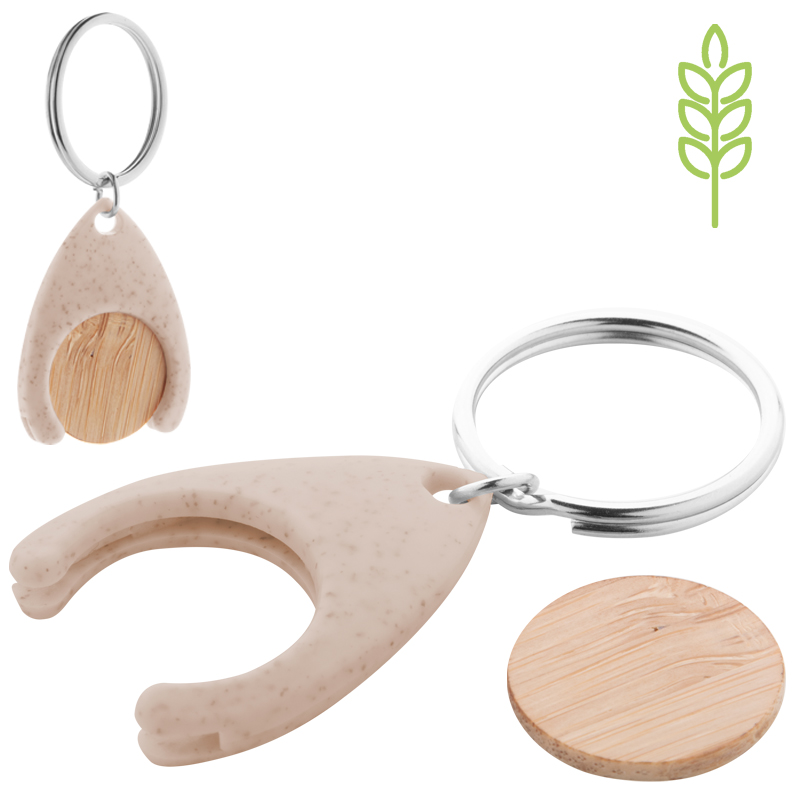 Bamboe winkelwagenmunt in ecologische sleutelhanger van tarwestro.