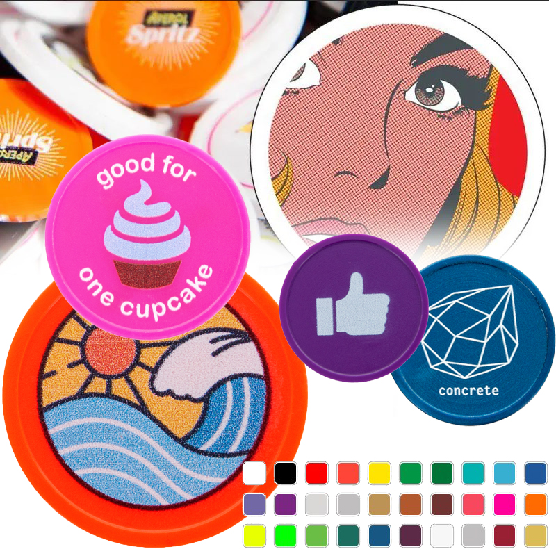 Jetons met meerkleurendruk laten je ontwerpen volledig uitkomen in de originele kleuren.