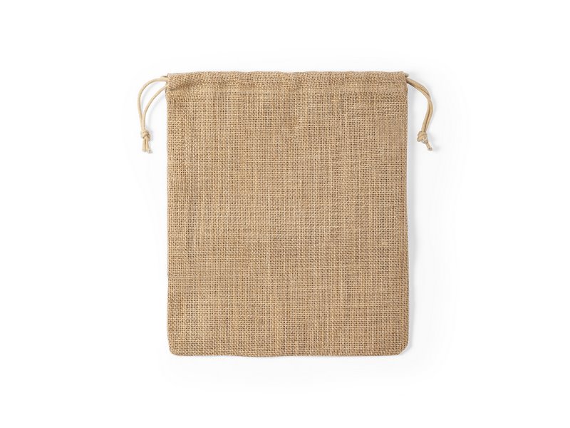Natuurlijn tas in resistent jute van 260gsm, met elegante koordsluiting en gestikte afwerking.