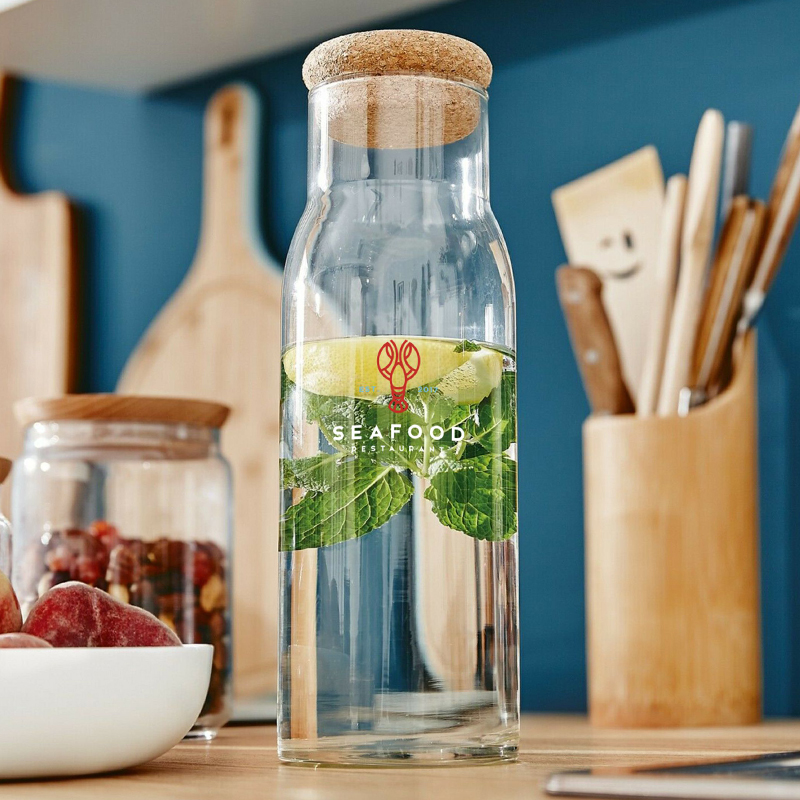 Een tafelfles voor het serveren van water, sap of alcoholische dranken.