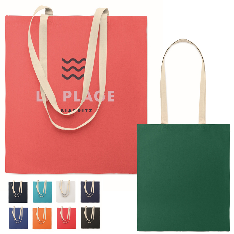 Boodschappentas van katoen met lange hengsels.