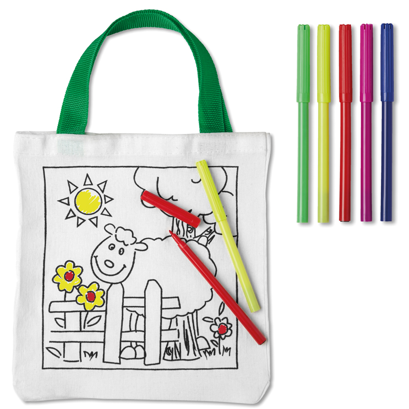 Katoenen draagtas met 5 kleuren markers op waterbasis.