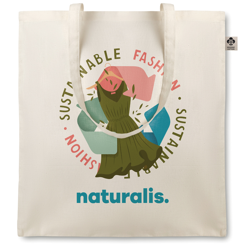 Boodschappentas van organisch katoen met lange hengsels.