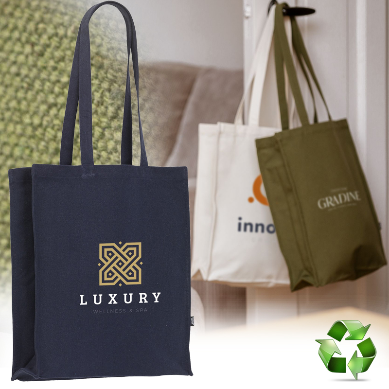 Winkeltas met lange hengsels van 100% gerecycled katoenen canvas (340 g/m2).
