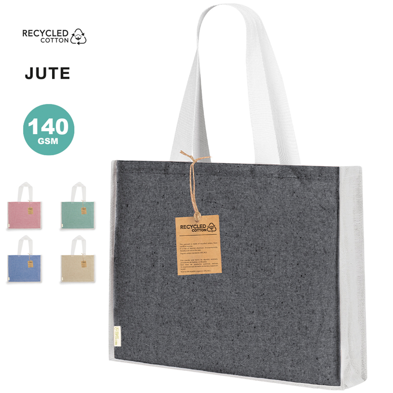 Tas in 100% gerecycled katoen materiaal 140 g/m2 in combinatie met jute.