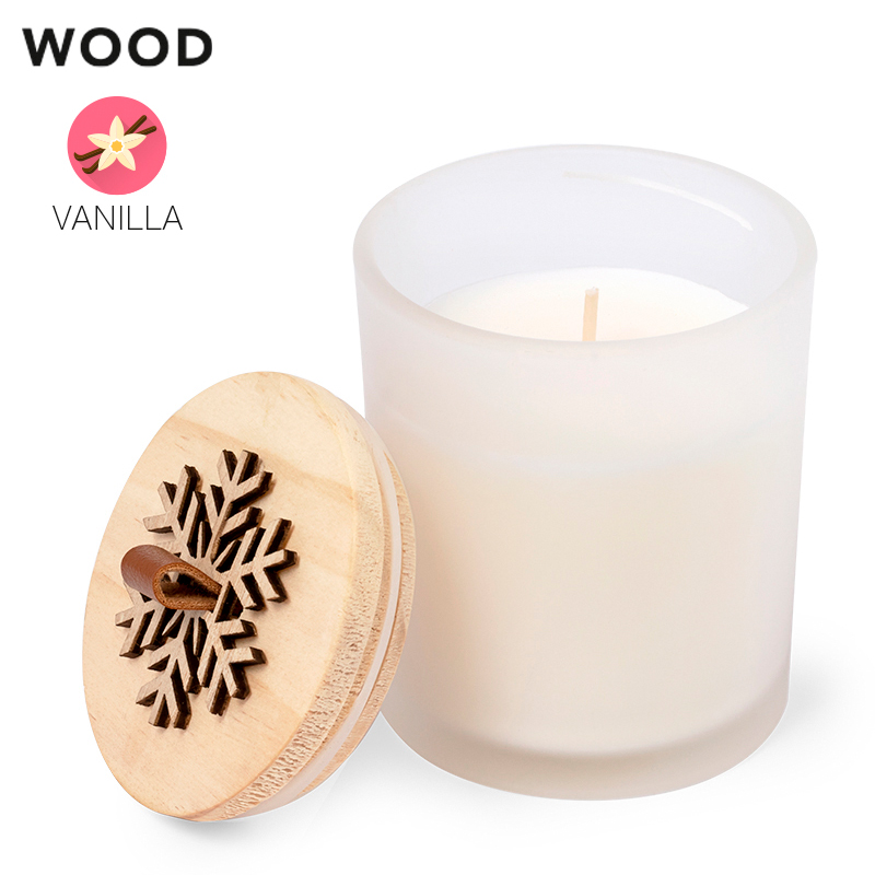 Gemaakt van glas, met gepolijst houten deksel en sneeuwvlokmotief in reliëf.