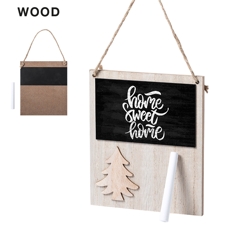 Natuurlijn kerstornament, met krijtbord en origineel stansmotief in kerstboomdesign, gemaakt van zacht aanvoelend hout.