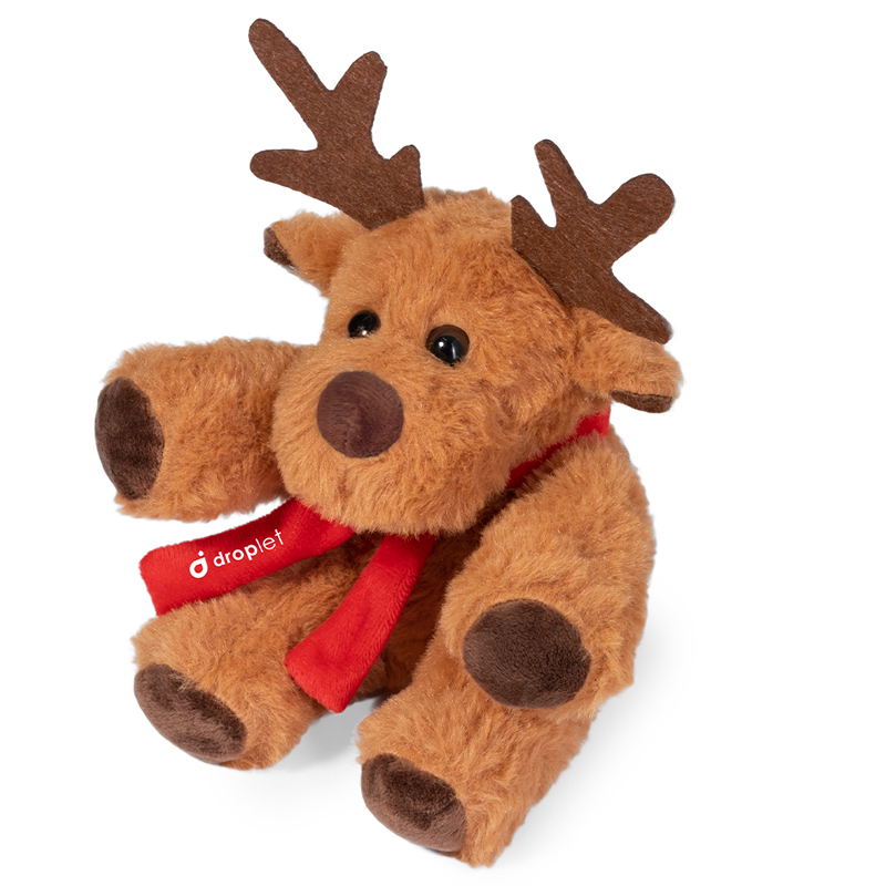 Zacht en knuffelig teddy rendier met een aanpasbare sjaal.