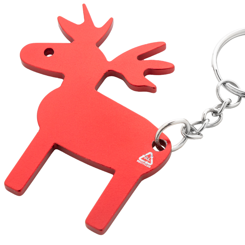 Aluminium sleutelhanger met metalen ring, in de vorm van een rendier.