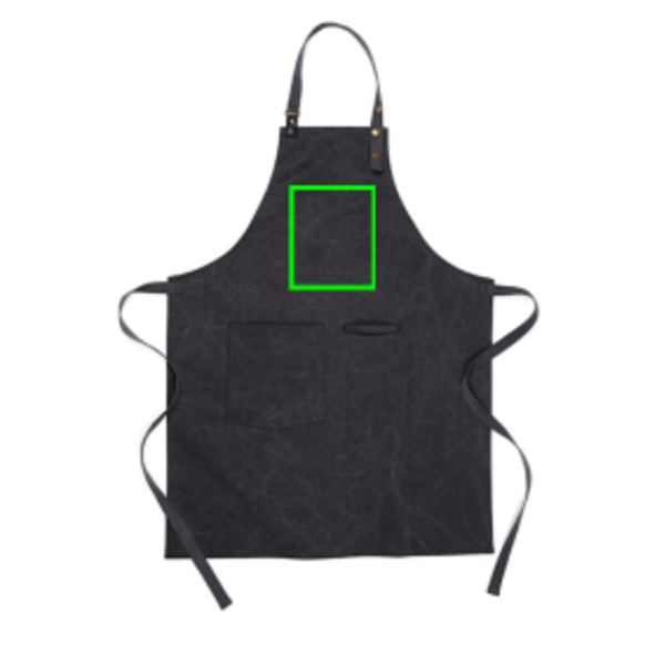 Schort gemaakt van 40% gerecycled polyester en 60% gerecycled katoen.