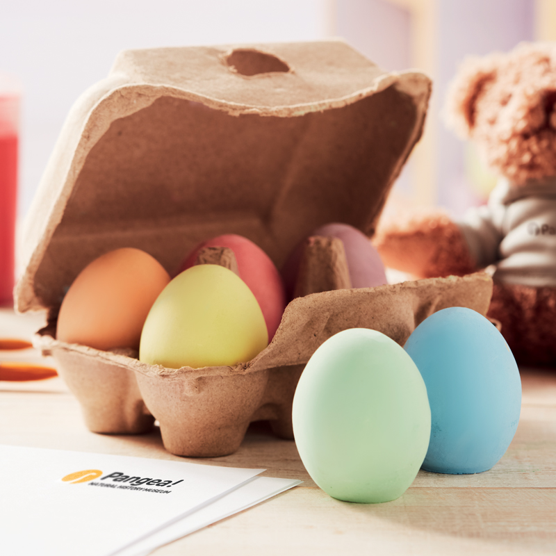 Set van 6 krijteieren in een kartonnen eierdoosje.