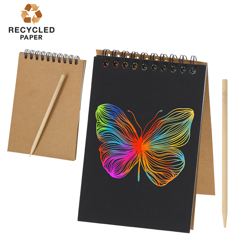 Ringband notitieboek A6 formaat, met matte zwarte pagina's aan één zijde ideaal voor krasen en ontdekken van levendige kleuren.