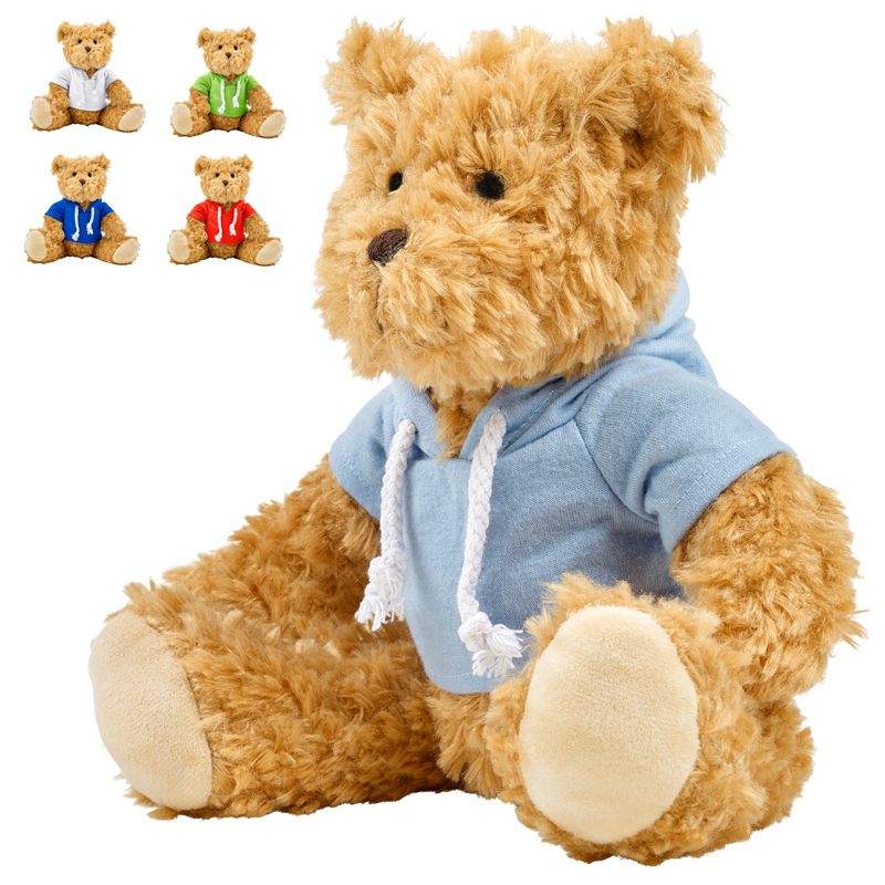De beer draagt een hoodie die in meerdere kleuren leverbaar is.