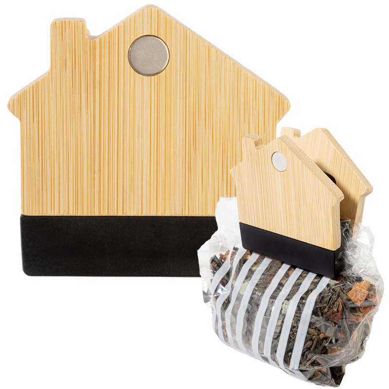 Huisvormige bamboe koelkast magneet met notitie clip.