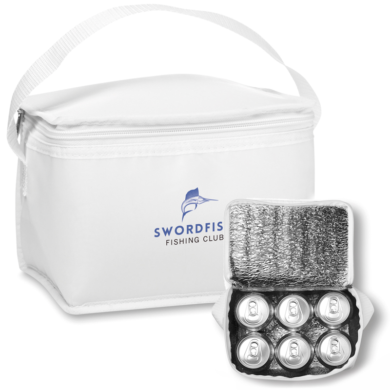 Koeltas voor 6 standaard blikjes met een aluminiumfolie beklede binnenkant.