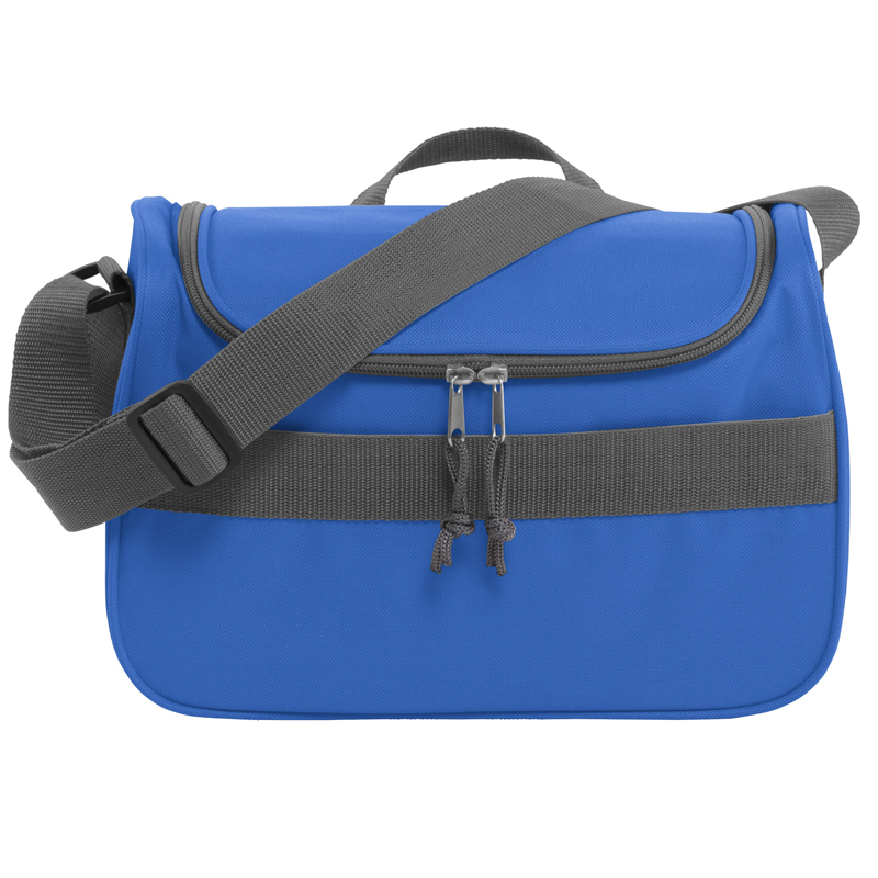 Polyester koeltas (600D) inclusief voorvak met klittenbandsluiting, groot ritsvak, draaglus en een verstelbare draagband.