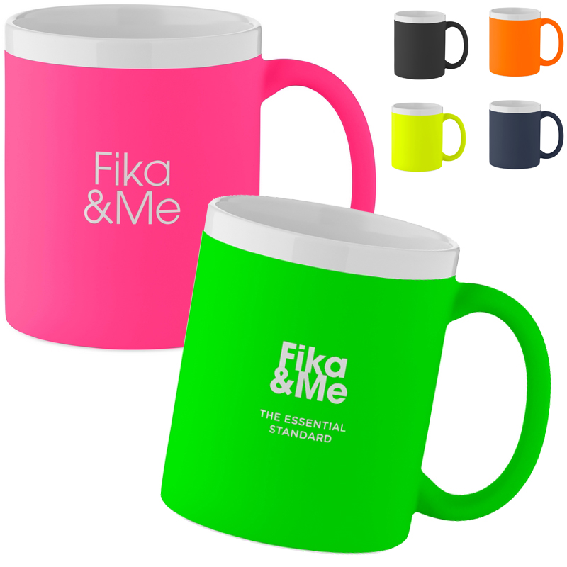 Aardewerk keramische mok met matte afwerking aan de buitenkant en witte binnenkant en rand.
