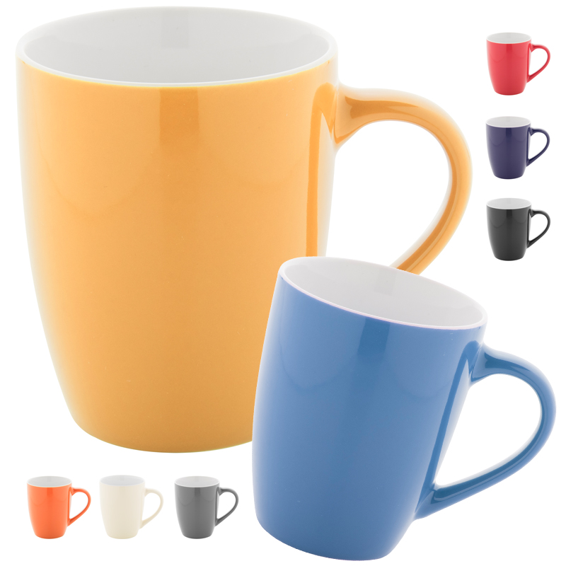 Hoogwaardige mok van gekleurd keramiek met witte binnenkant, 340 ml In doos van kraftpapier.