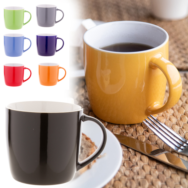 Hoogwaardige gekleurde keramische mok met witte binnenkant, 335 ml In kraftpapier doos.