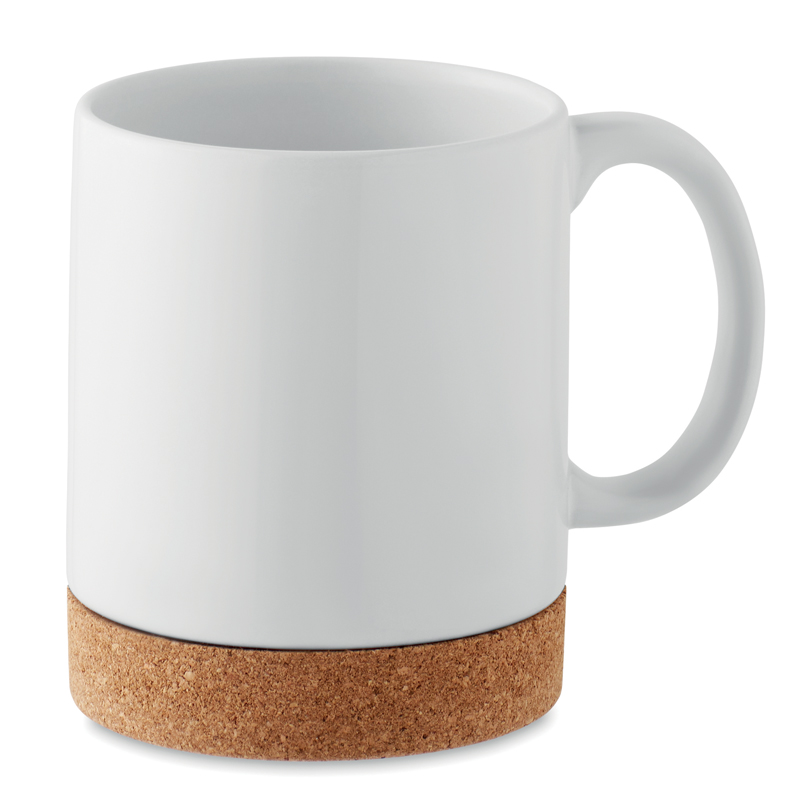 Keramische mok met speciale coating voor sublimatieprint en kurken onderzijde.