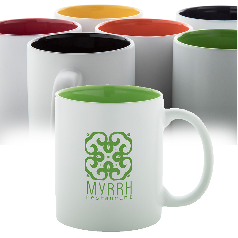 Witte keramiek mok met gekleurde binnenkant, 350 ml, de gegraveerd kleur is hetzelfde als de kleur van de binnenkant.
