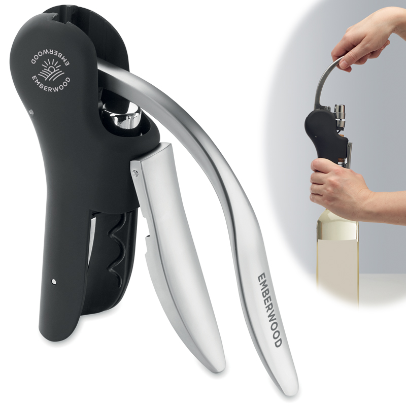 Handbediende automatische hendel kurkentrekker in ABS met rubberen afwerking.
