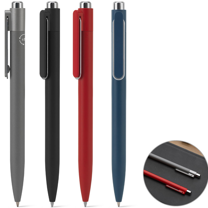 Aluminium balpen (94% gerecycled), met een innovatieve clipvorm die opvalt door zijn uniekheid en elegantie.