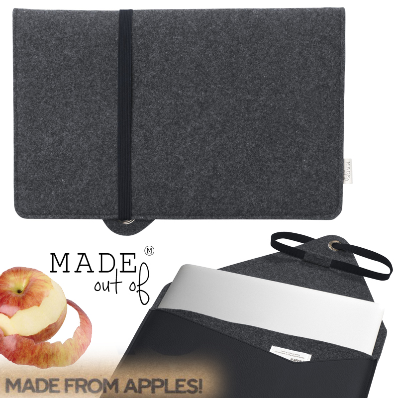 Deze stijlvolle, design 13 inch laptop sleeve is gemaakt van een combinatie van appelleer, een plantaardig alternatief voor leer, en gerecycled wolvilt vervaardigd uit geregenereerde wolvezels (50%), wol (30%) en PE (20%).