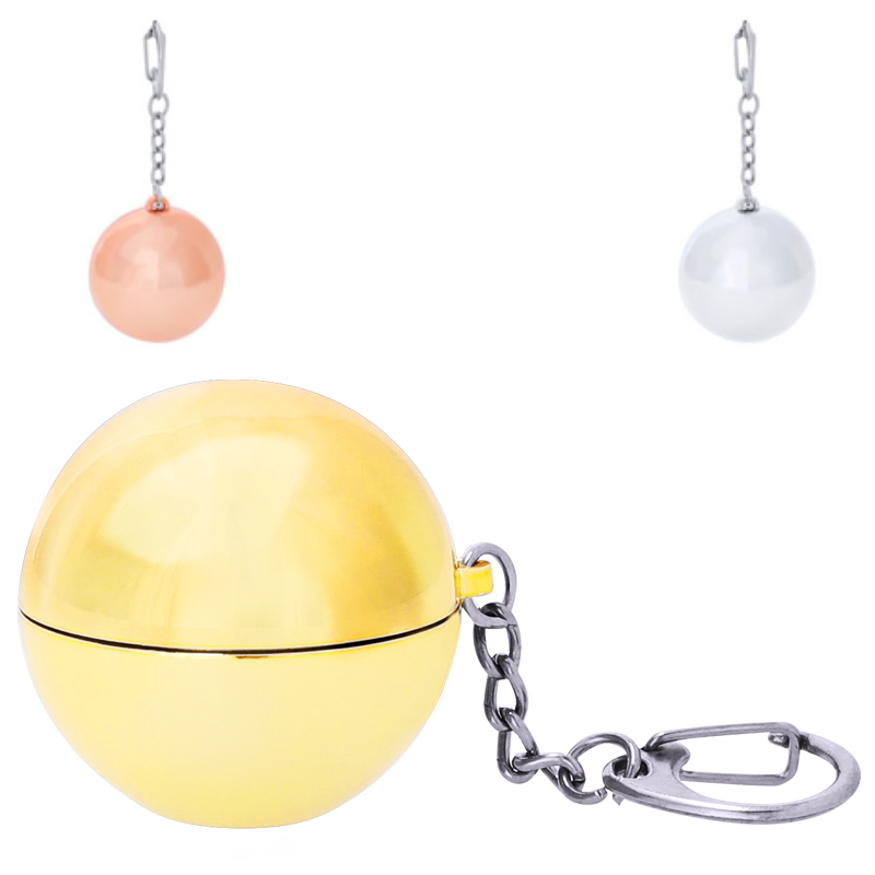 Ronde, vanille lippenbalsem in metallic kleur houder met metalen sleutelhanger.