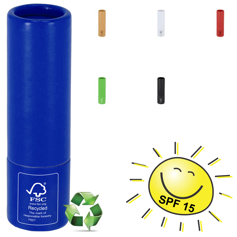Vanille lippenbalsem in houder van gerecycled papier, met SPF15-bescherming.