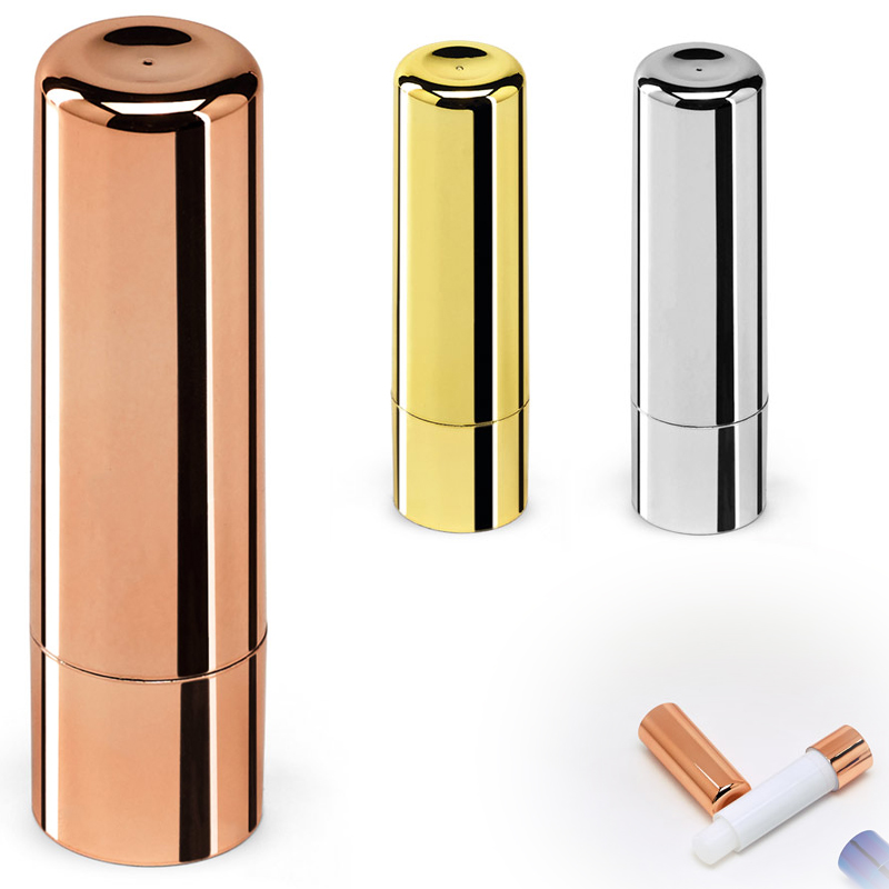 Lippenbalsem met uv-bescherming in een metallic ABS verpakking.