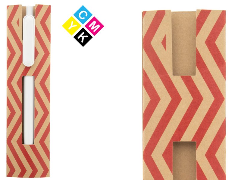 Custom made penhoes van kraftpapier met full colour afbeeldingen.